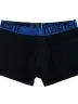 Однотонная обтягивающая модель стандартной посадки имеет ластовицу и эластичную резинку (3 см), пришитую накладным тройным швом, с внутренней стороны место крепления к основной части закрыто атласной лентой; с обеих сторон пояс оформлен логотипом бренда. Гульфик из двойной ткани отстрочен двойным швом, а боковые швы отсутствуют.