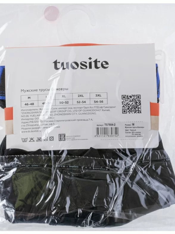 Трусы черного цвета арт. TS7804-2 в количестве одной штуки поставляются в фирменной коробке с дополнительной упаковкой в плотный транспортный картон. В зависимости от партии также возможна упаковка в пакет с фирменной этикеткой.