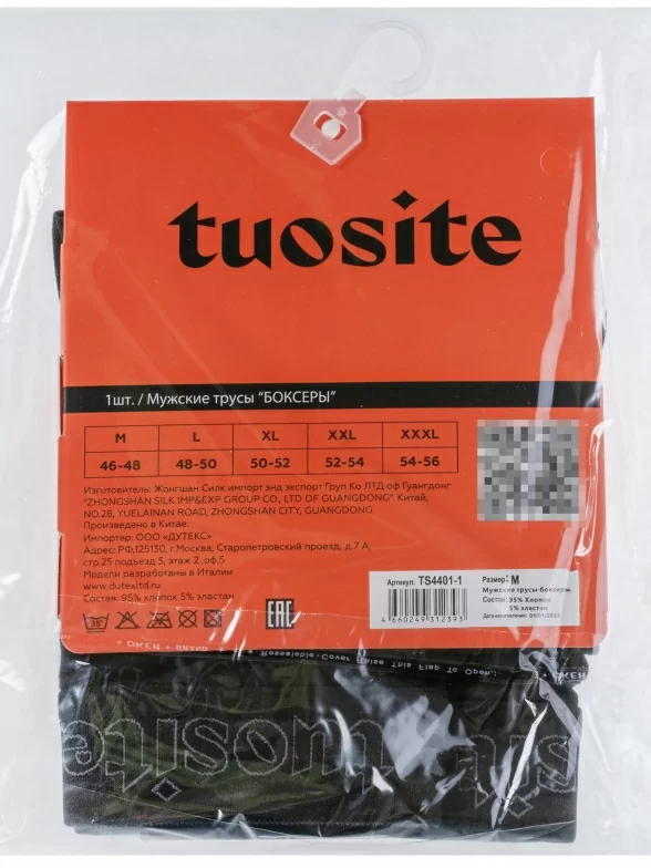 Мужские трусы-боксеры Tuosite, TS4401-1, ЧЕРНЫЙ