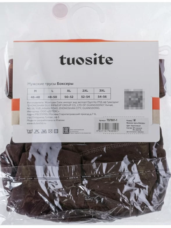 Трусы коричневого цвета арт. TS7801-1 в количестве одной штуки поставляются в фирменной коробке с дополнительной упаковкой в плотный транспортный картон. В зависимости от партии также возможна упаковка в пакет с фирменной этикеткой.