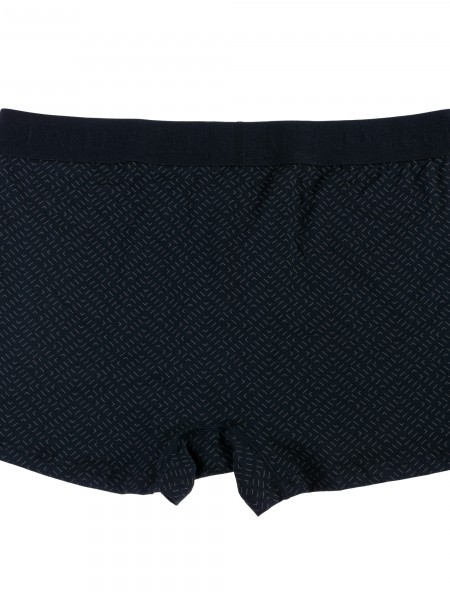Обтягивающая модель стандартной посадки оформлена геометрическим орнаментом, имеет широкую эластичную резинку (3 см); боковые швы отсутствуют. Пояс с обеих сторон оформлен логотипом бренда, а с внутренней стороны место крепления к основной части закрыто атласной лентой.