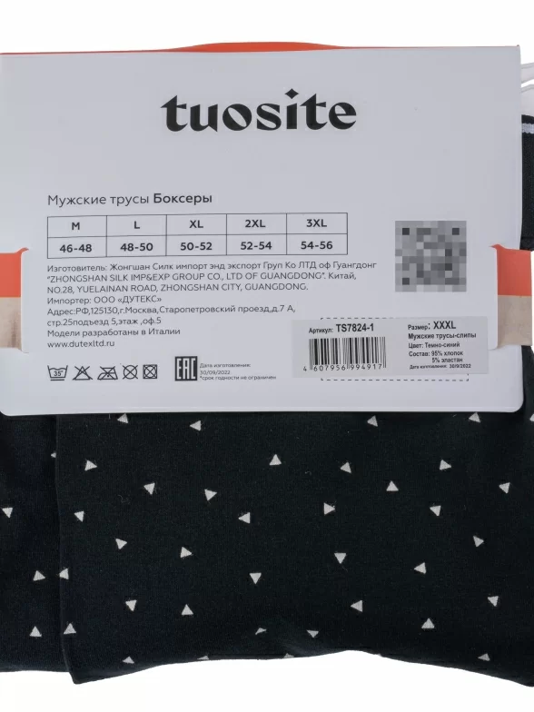 Трусы черного цвета артикула TS7824-1 поставляются в фирменной коробке с дополнительной упаковкой в плотный транспортный картон. В зависимости от партии также возможна упаковка в пакет с фирменной этикеткой.