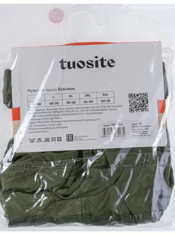 Трусы цвета хаки арт. TS7801-2 в количестве одной штуки поставляются в фирменной коробке с дополнительной упаковкой в плотный транспортный картон. В зависимости от партии также возможна упаковка в пакет с фирменной этикеткой.