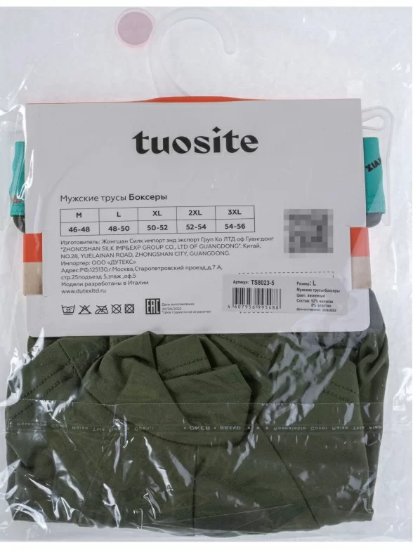 Трусы зеленого цвета арт. TS8023-5 в количестве одной штуки поставляются в фирменной коробке с дополнительной упаковкой в плотный транспортный картон. В зависимости от партии также возможна упаковка в пакет с фирменной этикеткой.