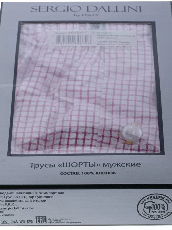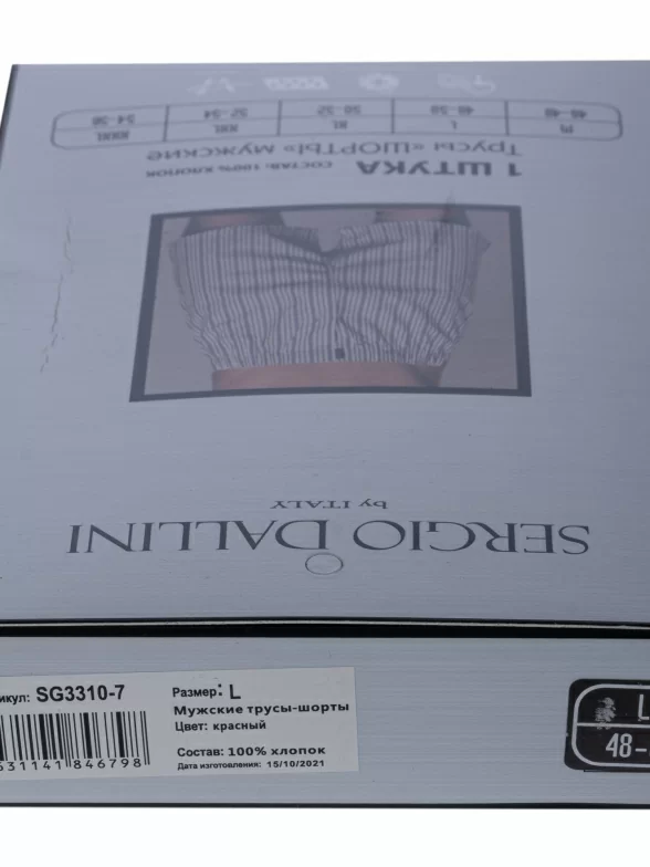 Трусы-шорты бело-красного цвета арт. SG3310-7 поставляются в фирменной коробке с дополнительной защитой плотного транспортного картона. В зависимости от партии также возможна упаковка в фирменный пакет с зиплоком, либо в пакет с фирменной этикеткой.