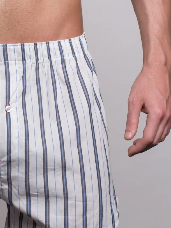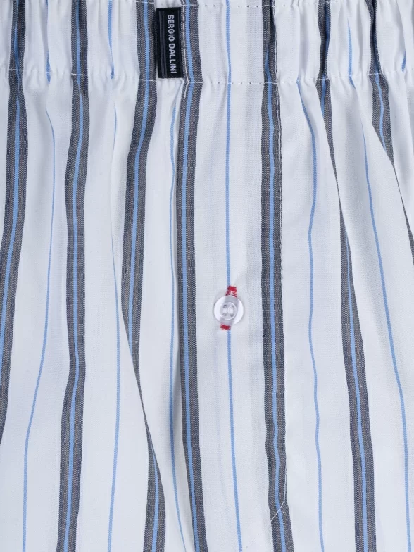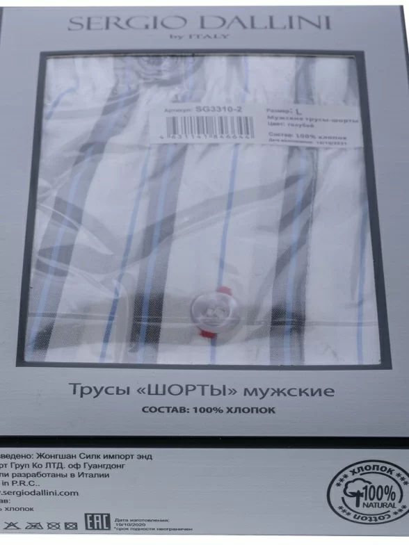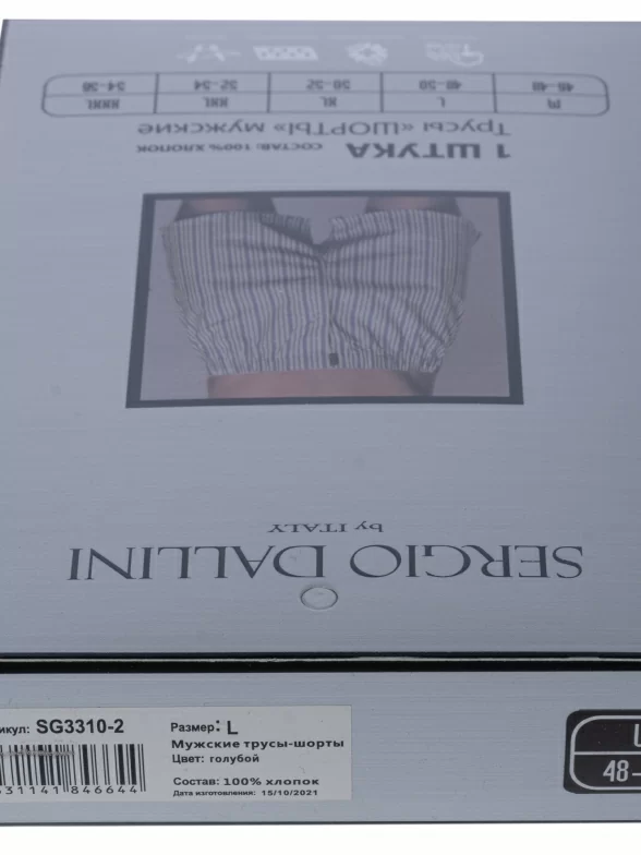 Трусы-шорты белого цвета с голубыми полосками арт. SG3310-2 поставляются в фирменной коробке с дополнительной защитой плотного транспортного картона. В зависимости от партии также возможна упаковка в фирменный пакет с зиплоком, либо в пакет с фирменной этикеткой.