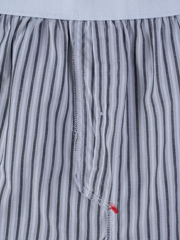 Модель свободного кроя и стандартной посадки оформлена принтом в полоску, имеет вшитую эластичную резинку.