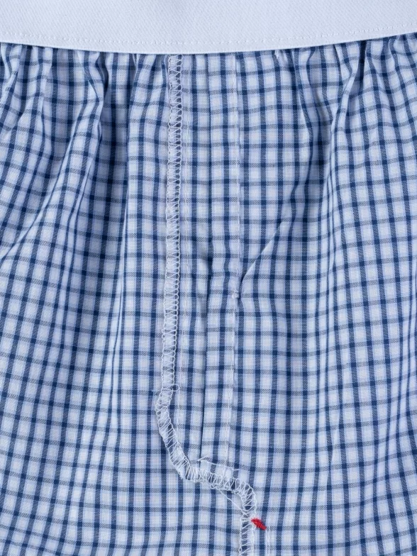 Модель свободного кроя и стандартной посадки оформлена принтом в мелкую клетку, имеет вшитую эластичную резинку.