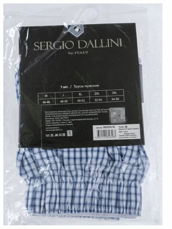 Трусы-шорты сине-белого цвета арт. SG3310-16 в количестве одной штуки поставляются в фирменной коробке с дополнительной защитой плотного транспортного картона. В зависимости от партии также возможна упаковка в фирменный пакет с зиплоком, либо в пакет с фирменной этикеткой.