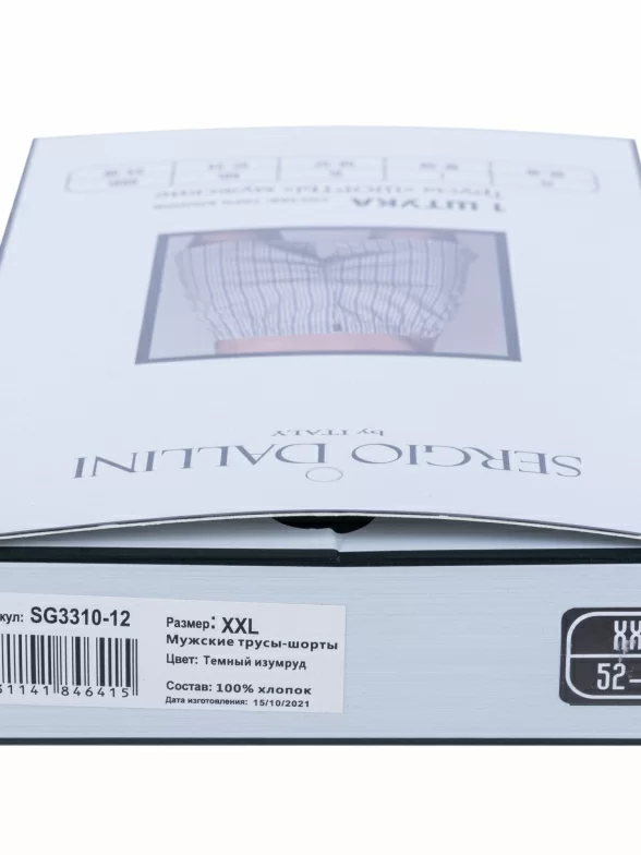 Трусы-шорты темно-изумрудного цвета арт. SG3310-12 поставляются в фирменной коробке с дополнительной защитой плотного транспортного картона. В зависимости от партии также возможна упаковка в фирменный пакет с зиплоком, либо в пакет с фирменной этикеткой.
