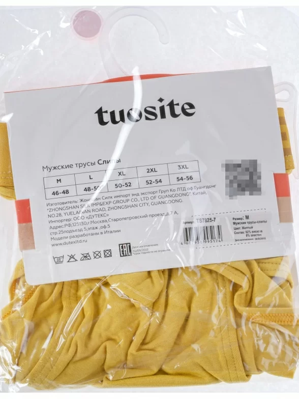 Трусы желтого цвета арт. TS7825-7 в количестве одной штуки поставляются в фирменной коробке с дополнительной упаковкой в плотный транспортный картон. В зависимости от партии также возможна упаковка в пакет с фирменной этикеткой.