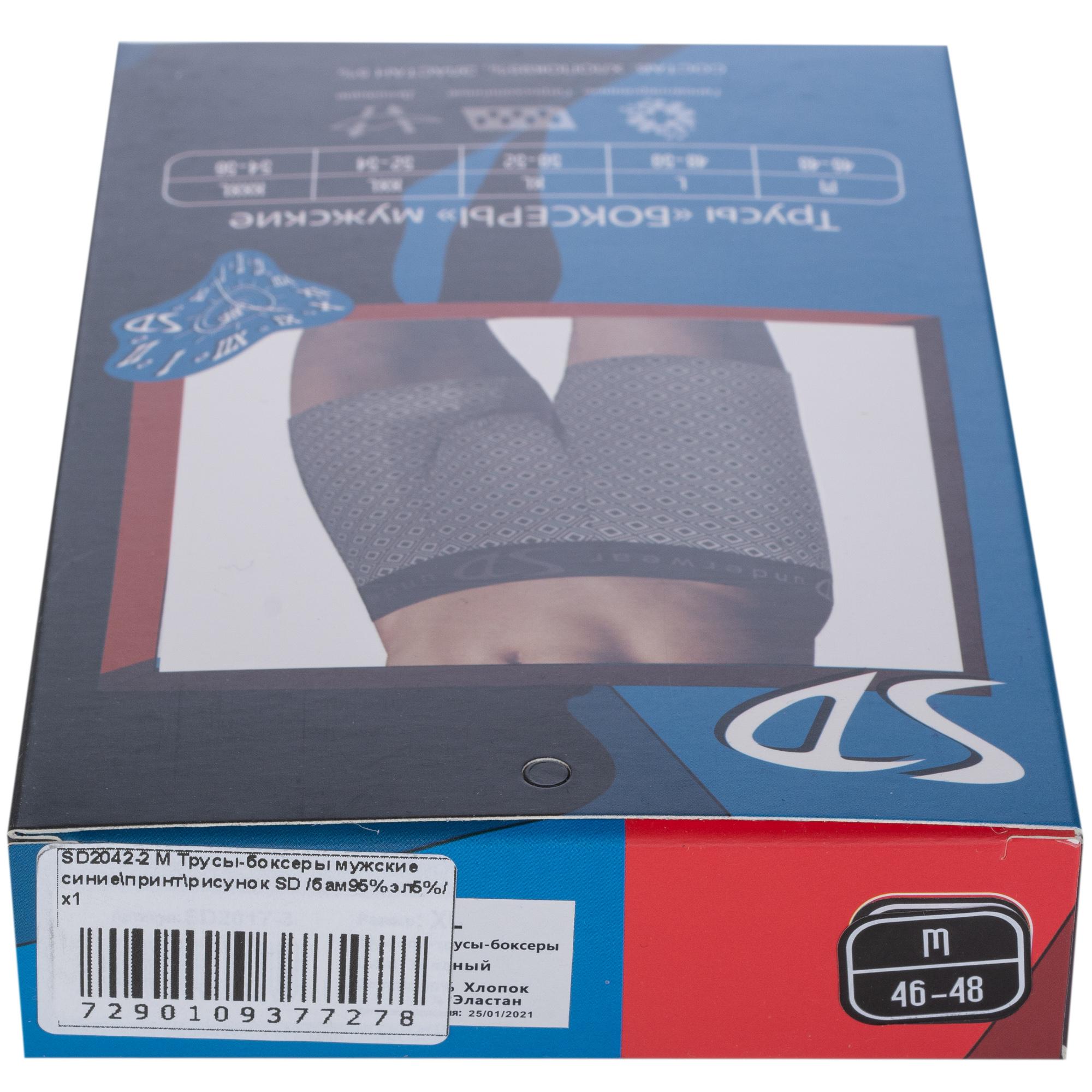Трусы-боксеры синего цвета артикула SD2042-2 поставляются в фирменной коробке или в прозрачном пакете с этикеткой.