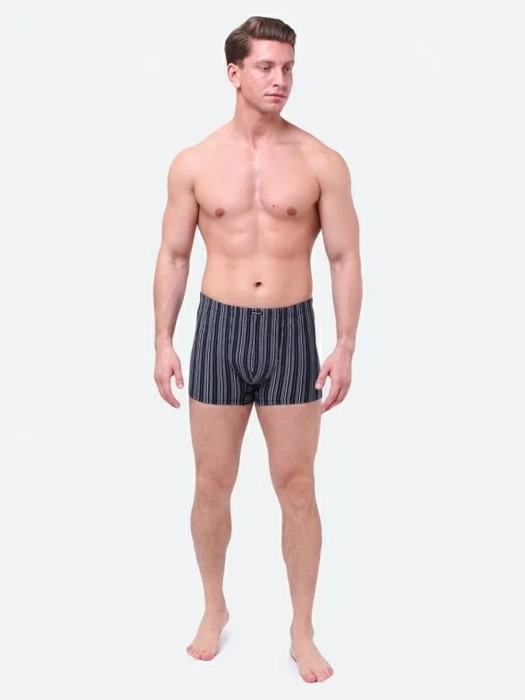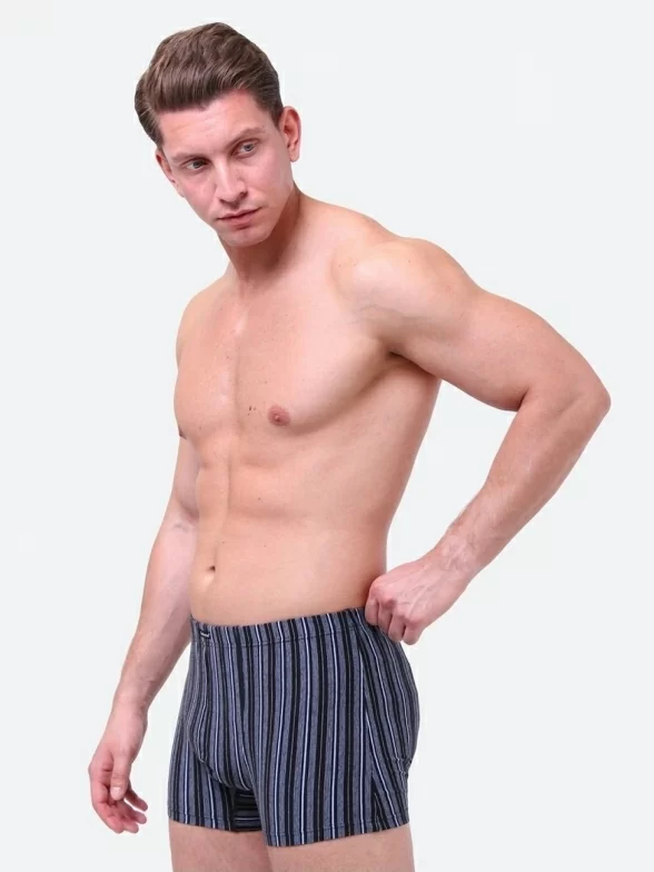 Удобные мужские боксеры в вертикальную полоску. Они сделаны из хлопка с добавлением лайкры и обеспечивают высокий уровень комфорта, а также очень приятны к телу. На втачном поясе расположена фирменная нашивка.