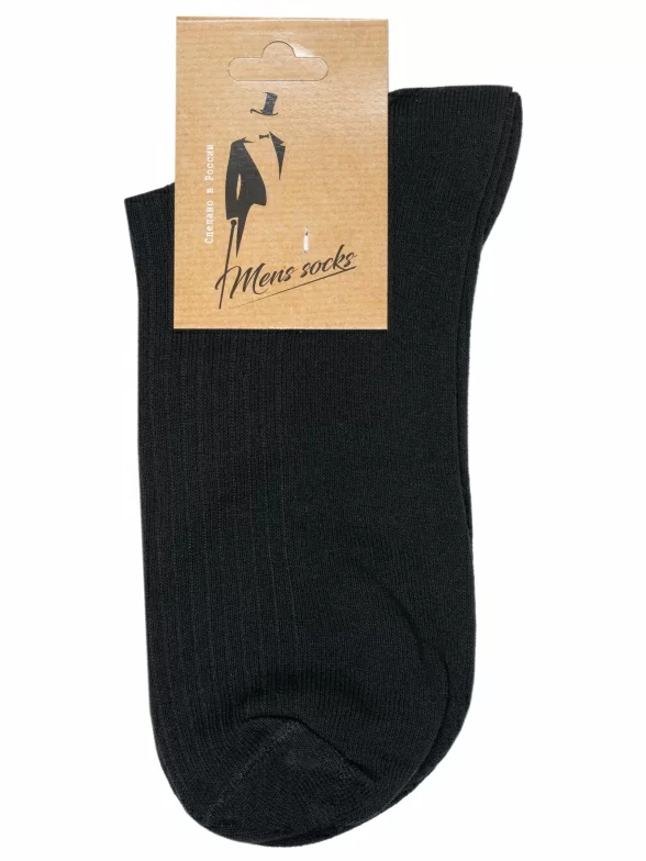 Круглогодичные укороченные мужские носки, цвет черный, спортивные, классические, шов обычный (не бесшовные), принт (рисунок): однотонный, без рисунков/узоров, состав: 75% хлопок, 25% полиамид, арт. С9. Производитель «ООО Альтаир, г. Орск, Оренбургская обл, Россия» под брендом «Альтаир».
