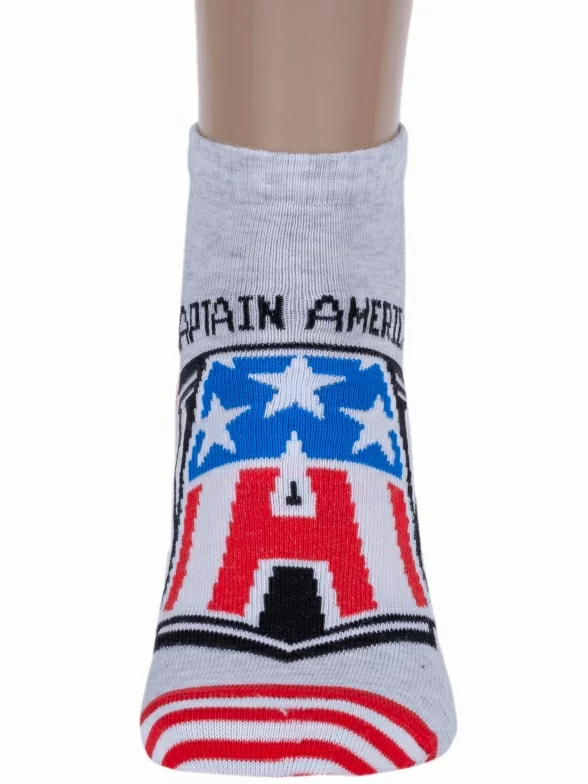 Летние короткие мужские носки, цвет светло-серый, повседневные, шов кеттельный (бесшовная технология), принт (рисунок): фильмы / сериалы / мультики, поп-культура, с узором, крупные контрастные рисунки, состав: 60% хлопок, 38% полиамид, 2% эластан, арт. 17С-141СПМ. Производитель «DiWaRi» Беларусь под брендом «Diwari».