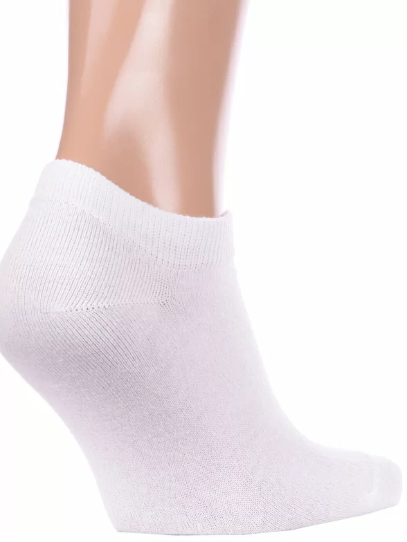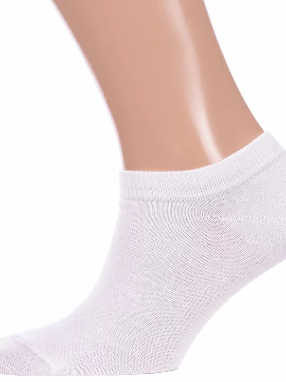 Летние ультракороткие мужские носки, цвет белый, классические, возможно бесшовные, принт (рисунок): однотонный, без рисунков/узоров, состав: 53% хлопок, 27% полиэстер, 18% полиамид, 2% эластан, арт. С-129. Производитель «КРАСНАЯ ВЕТКА» Россия под брендом «Красная ветка».
