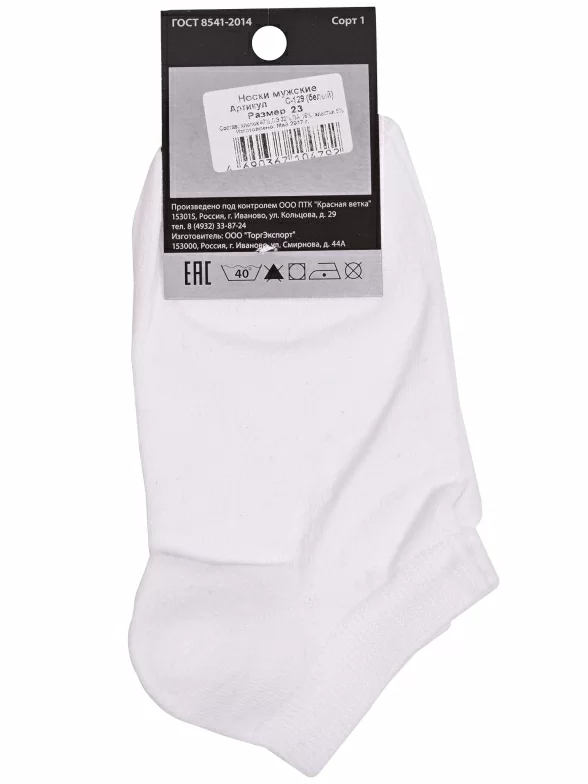 Мужские ультракороткие носки "Красная ветка", С-129, БЕЛЫЕ