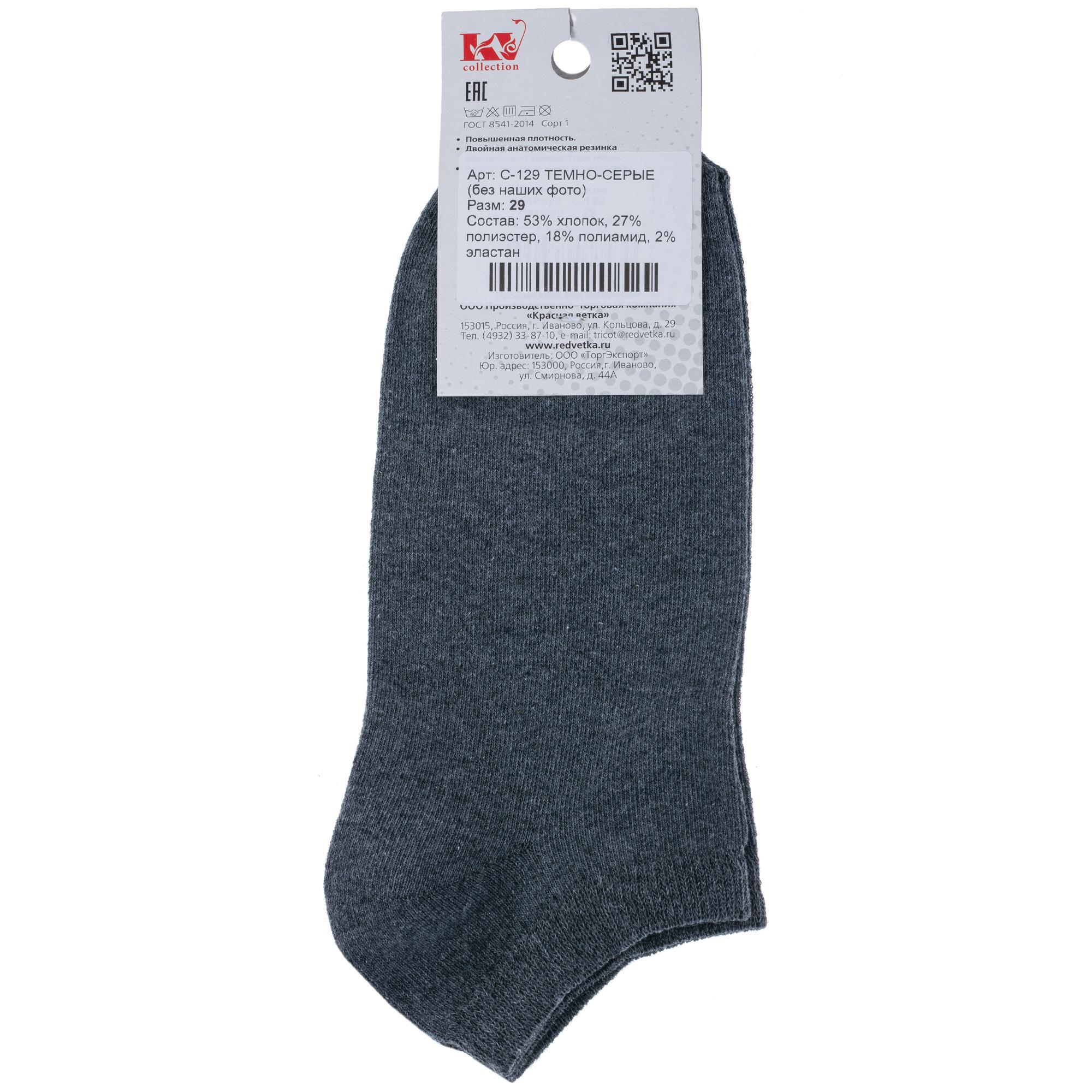 Мужские ультракороткие носки "Красная ветка" С-129, ТЕМНО-СЕРЫЕ