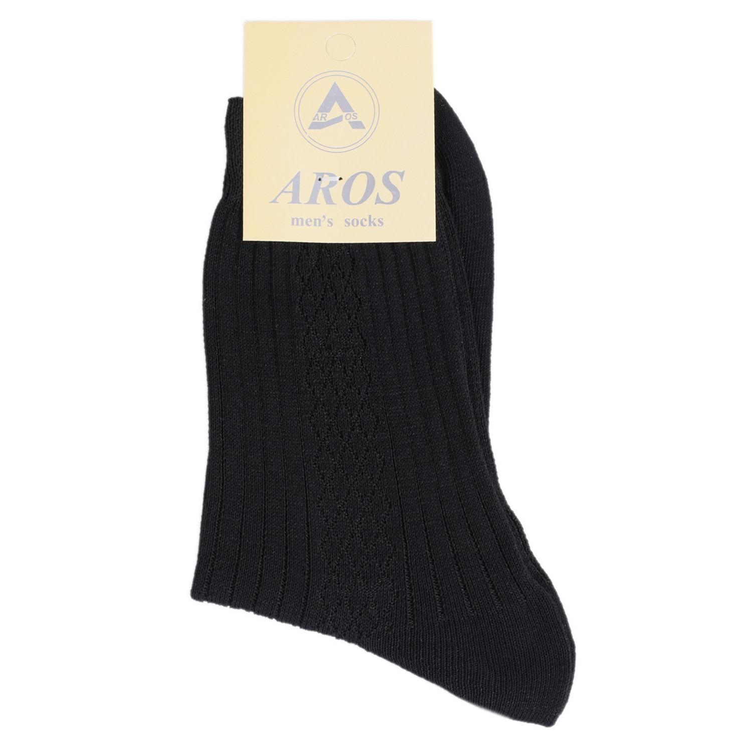 Хлопковые мужские носки AROS. Произведены на российской фабрике в г. Санкт-Петербург. Качественные, дышащие, мягкие носки на каждый день. Необычная вязка с узорами. Прекрасно подойдут как к классическому костюму, так и к повседневной неформальной одежде.