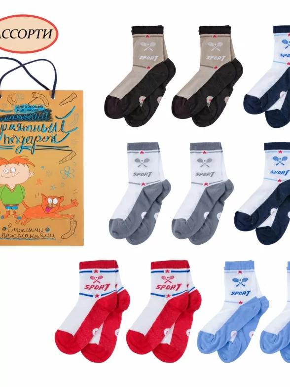 В комплект входят 10 пар носков с индивидуальными фабричными этикетками, к ним будет приложен забавный фирменный пакет, все вместе дополнительно упаковано в плотный транспортный картон для сохранности при доставке.