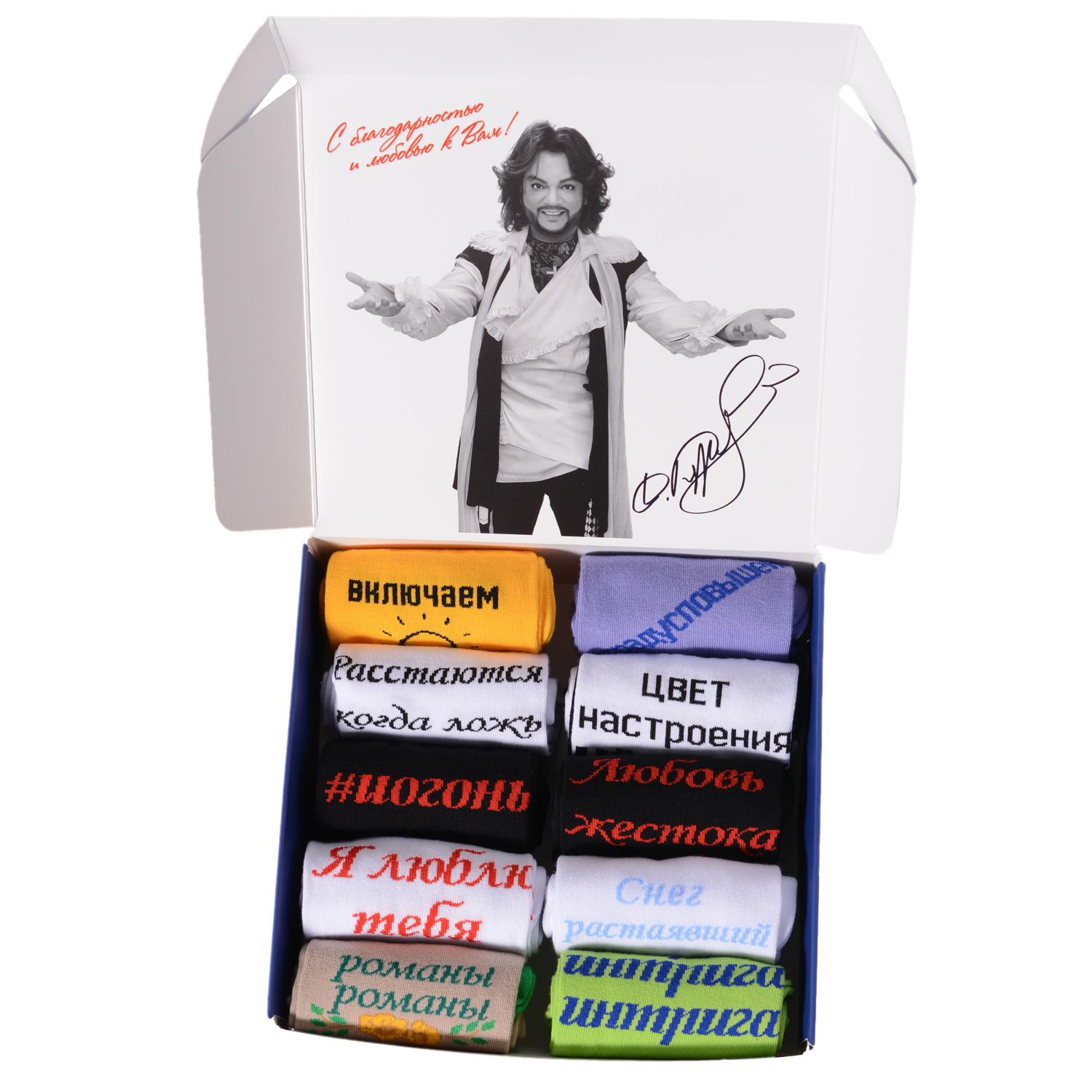 Набор из 10 пар мужских носков "АЗБУКА ХЛОПКА". Яркие, стильные и очень качественные. Состоят на 82% из хлопка, а входящие в состав полиамид (14%) и эластан (4%) делают изделия более плотными, износостойкими и хорошо тянущимися. Эластичная резинка предотвращает сползание носка, при этом не пережимает кожу. Все носки различных оттенков, украшены небольшими принтами и надписями из популярных песен. Носки "АЗБУКА ХЛОПКА" прекрасно дополнят повседневные образы.