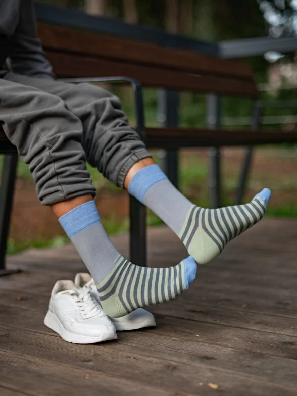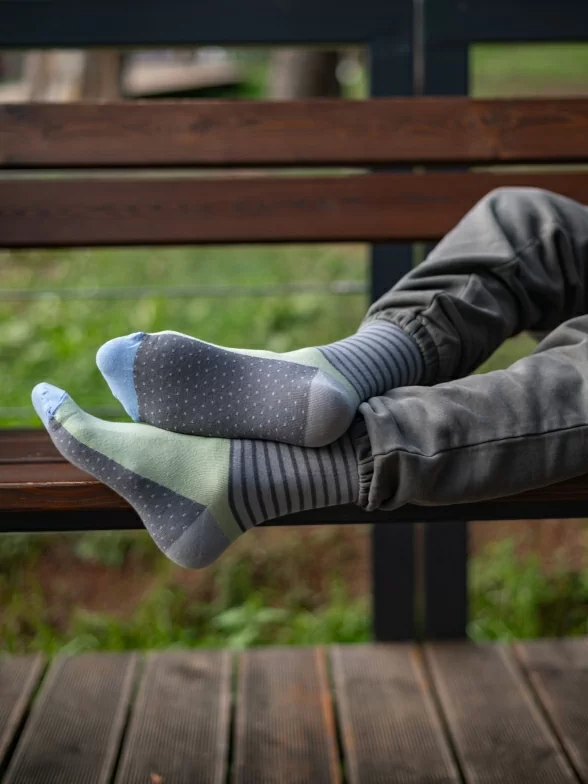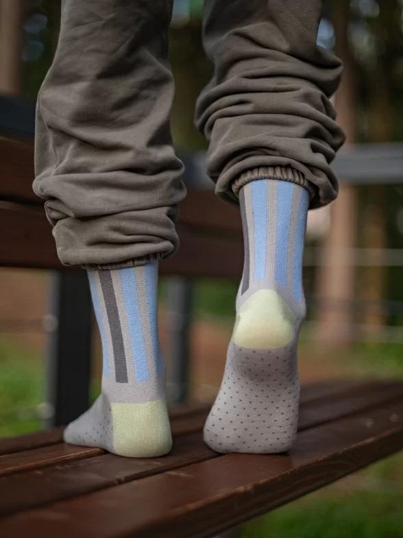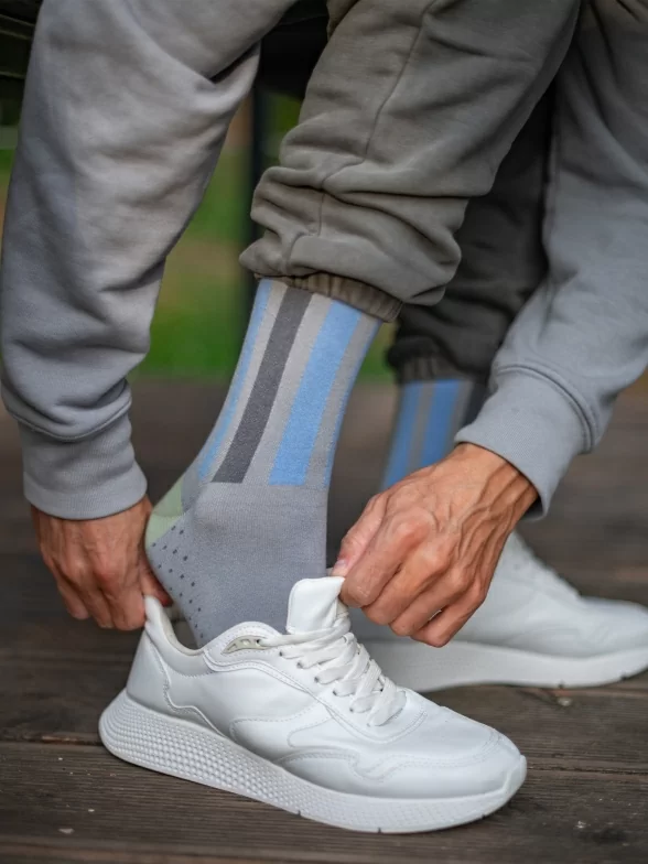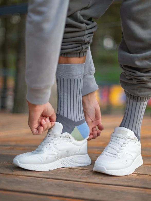 Носки без фабричных этикеток компактно упакованы внутри фирменной яркой коробки, которая для транспортировки помещается дополнительно в транспортный картон.