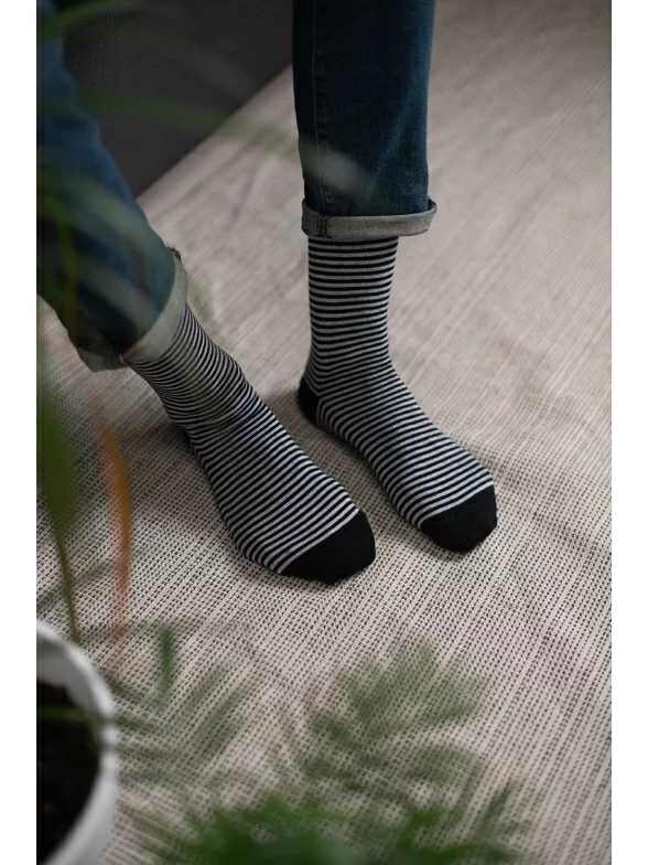 Связаны из хлопка на фабрике в Ленинградской области с использованием современных станков высокой точности (200 игл на барабане). Благодаря входящим в состав полиамиду и эластану изделия хорошо тянутся, а также имеют высокую износостойкость. Процентное содержание волокон: 80% хлопок, 17% полиамид, 3% эластан.