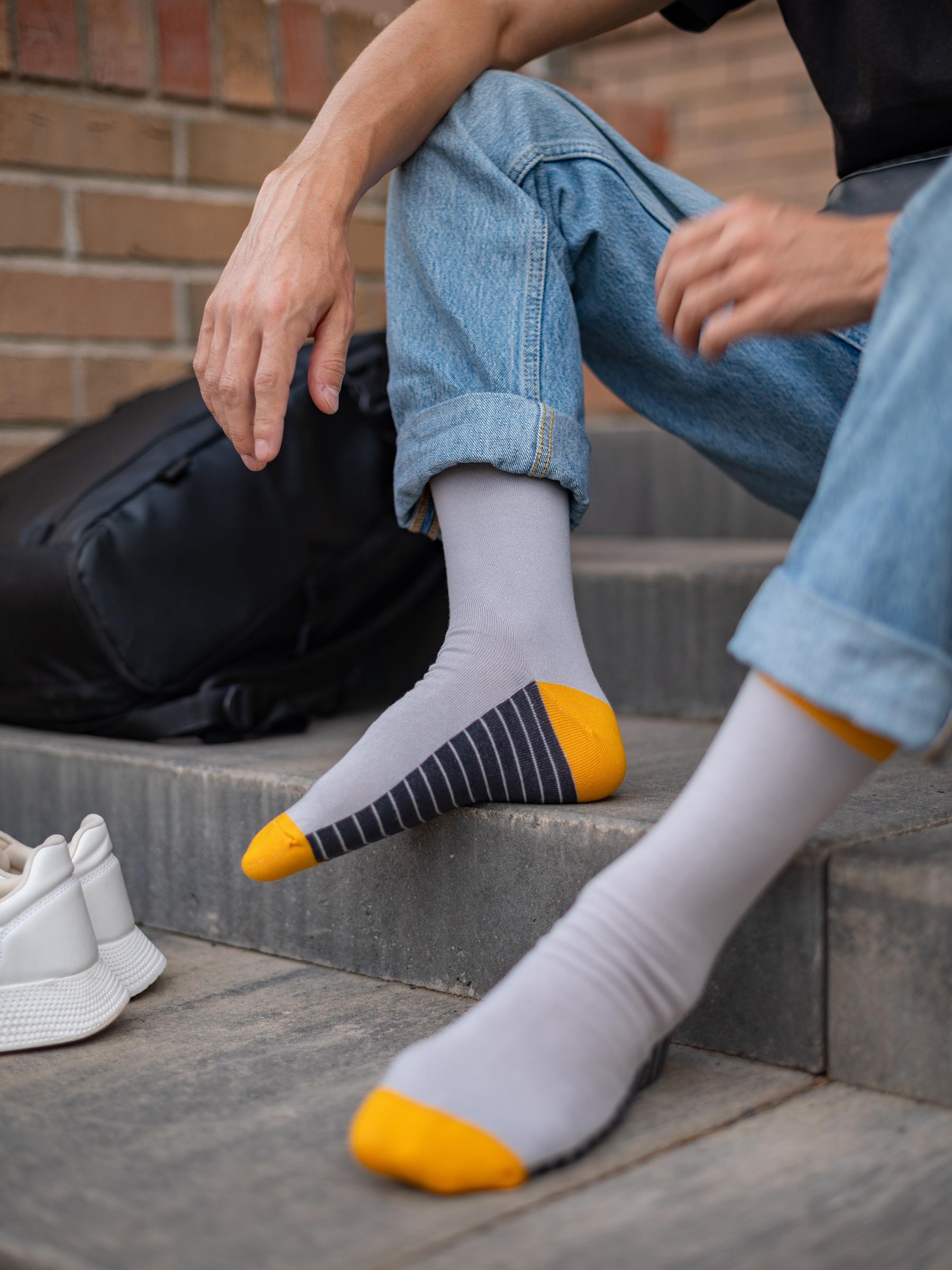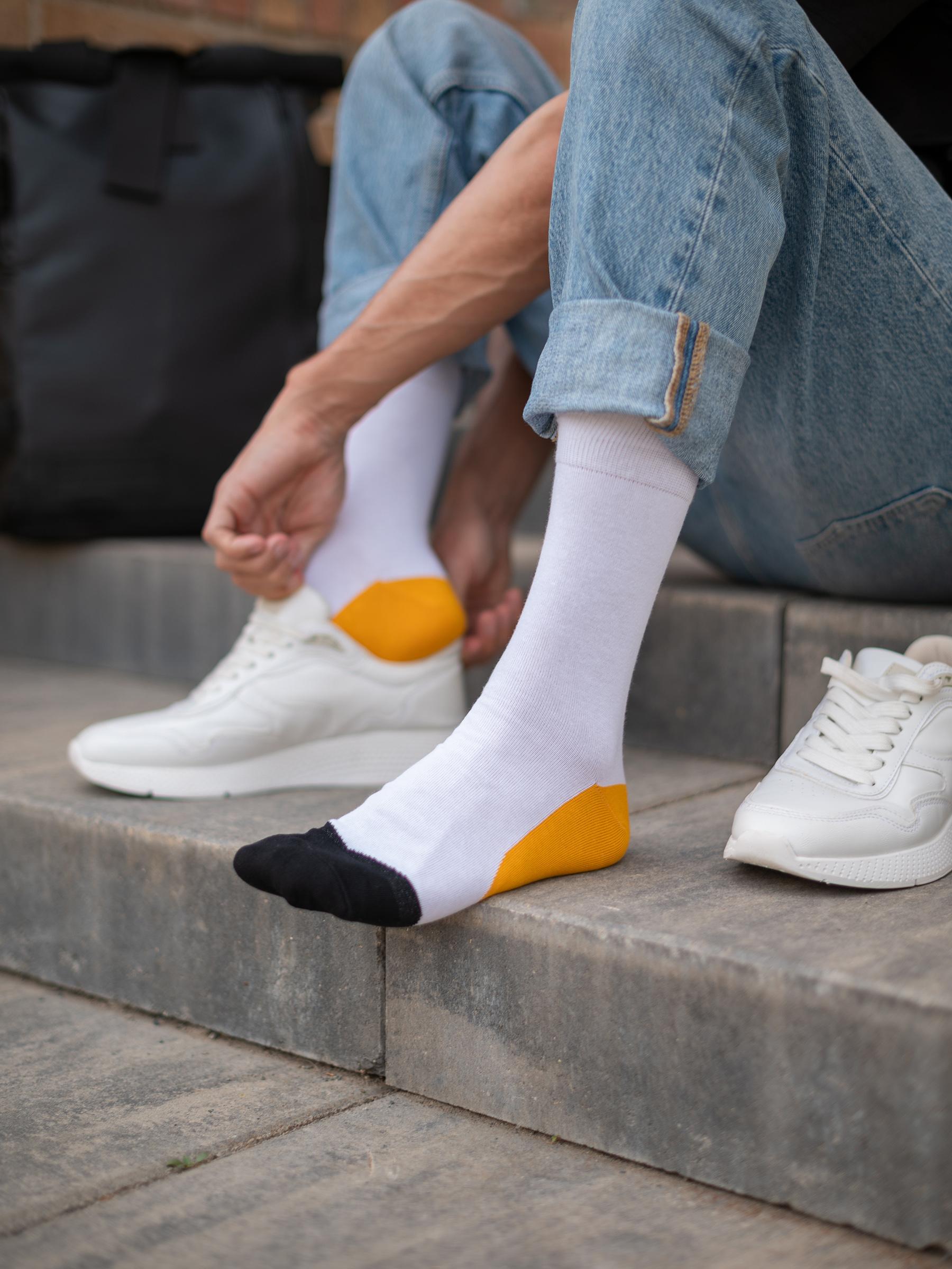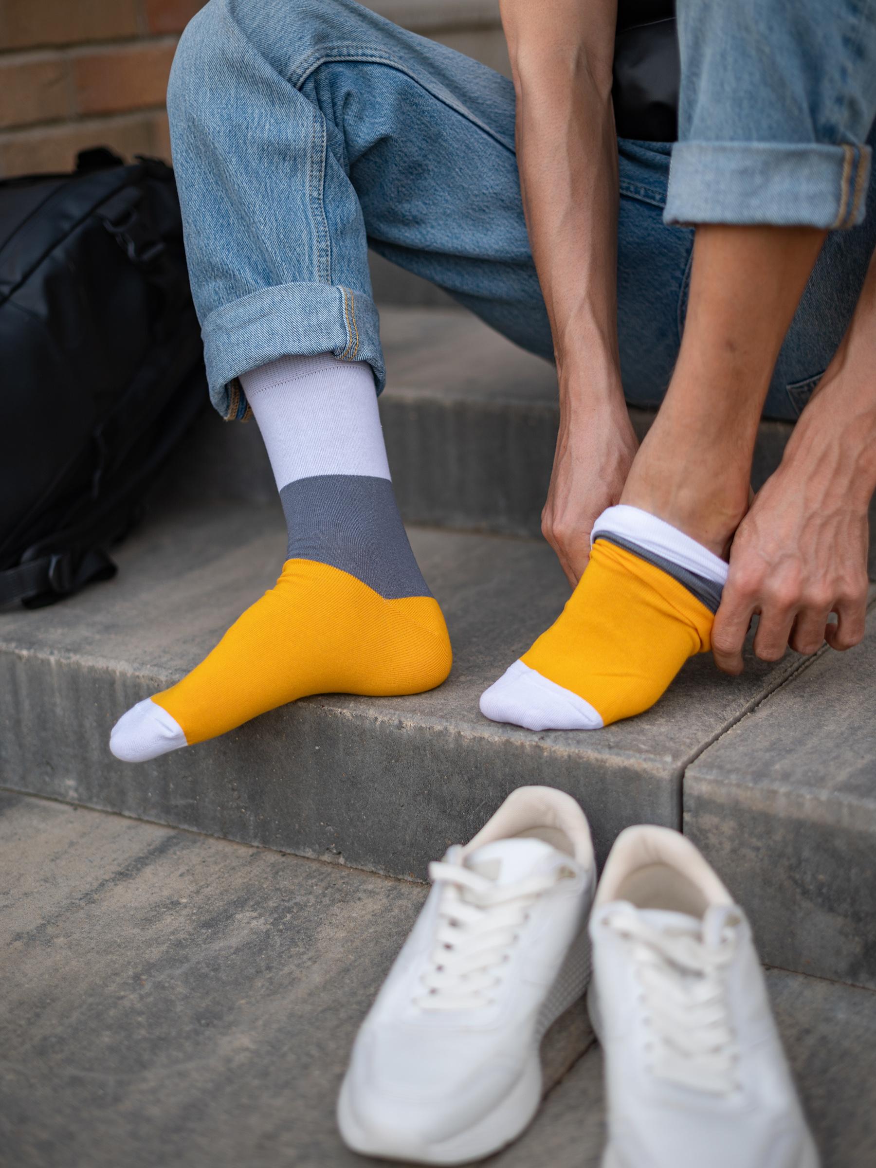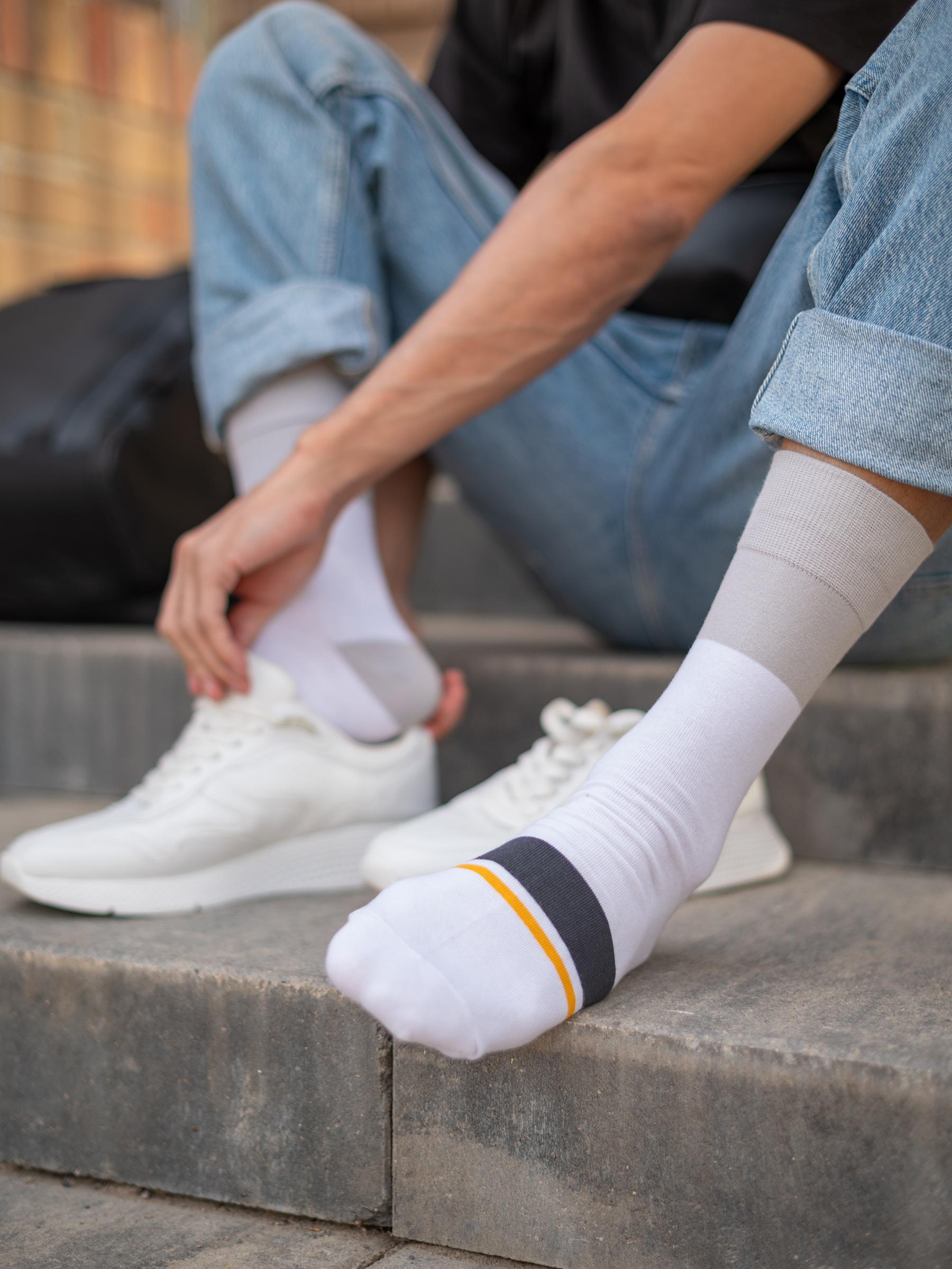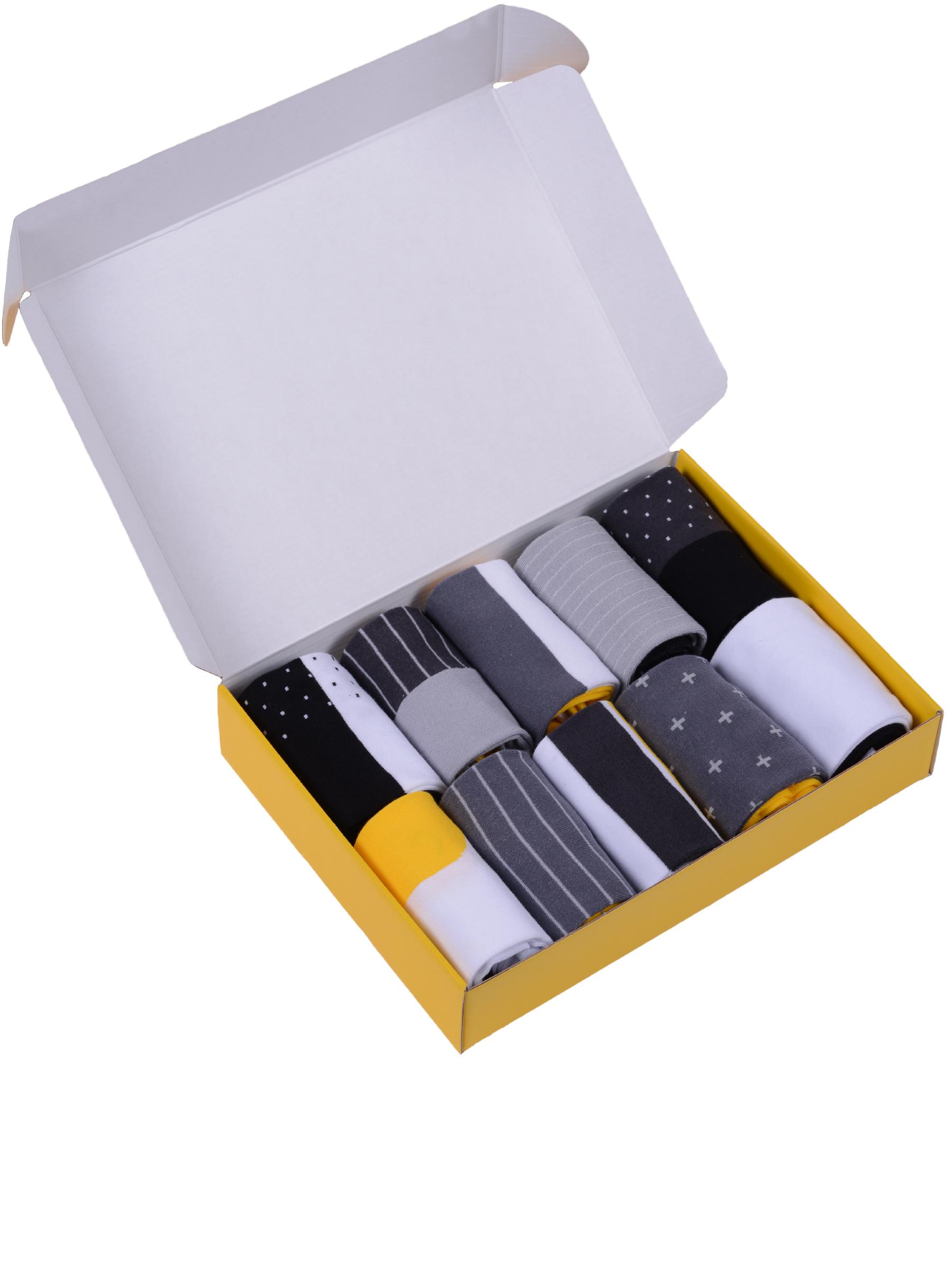 Носки без фабричных этикеток компактно упакованы внутри фирменной яркой коробки, которая для транспортировки помещается дополнительно в транспортный картон.
