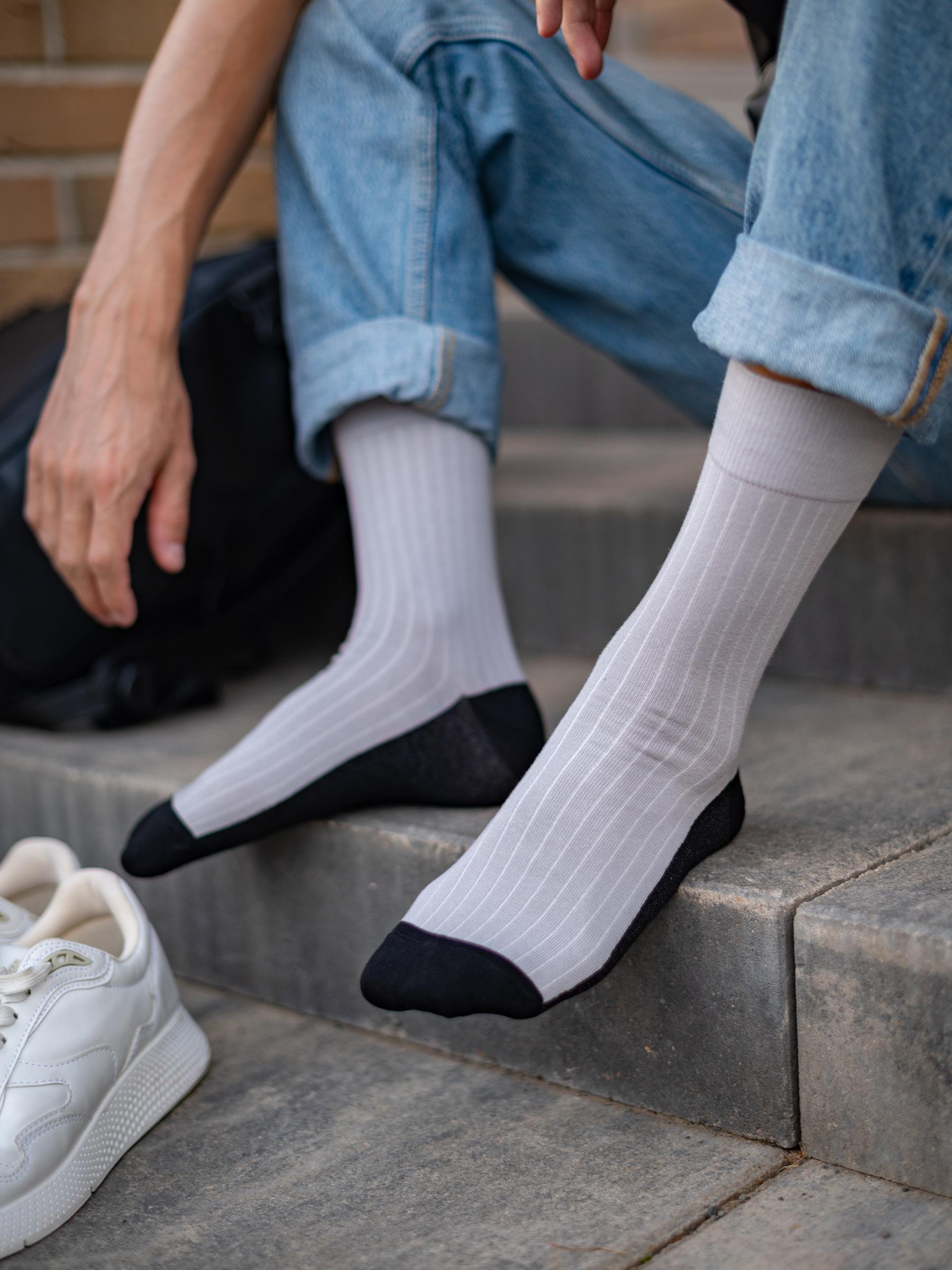 Связаны из хлопка на фабрике в Ленинградской области с использованием современных станков высокой точности (200 игл на барабане). Благодаря входящим в состав полиамиду и эластану изделия хорошо тянутся, а также имеют высокую износостойкость. Процентное содержание волокон: 80% хлопок, 17% полиамид, 3% эластан.