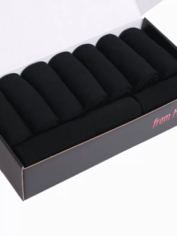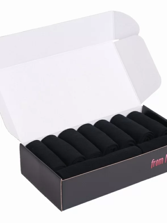 Носки без фабричных этикеток свернуты в аккуратные рулончики внутри фирменного кейса. А чтобы он не потерся и не повредился при доставке, набор надежно упаковывается в транспортный плотный картон.