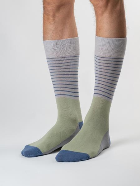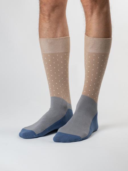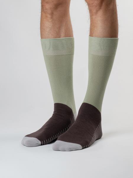 Носки вяжутся на российской фабрике МС Клаб на современных станках высокого класса (с плотностью вязки в 200 игл). Благодаря качественному оборудованию и оптимальному сочетанию гребенного хлопка и синтетических нитей эти носки износостойкие, гладкие и плотные. Двойной широкий борт не пережимает ногу, при этом надежно фиксирует носок на голени.