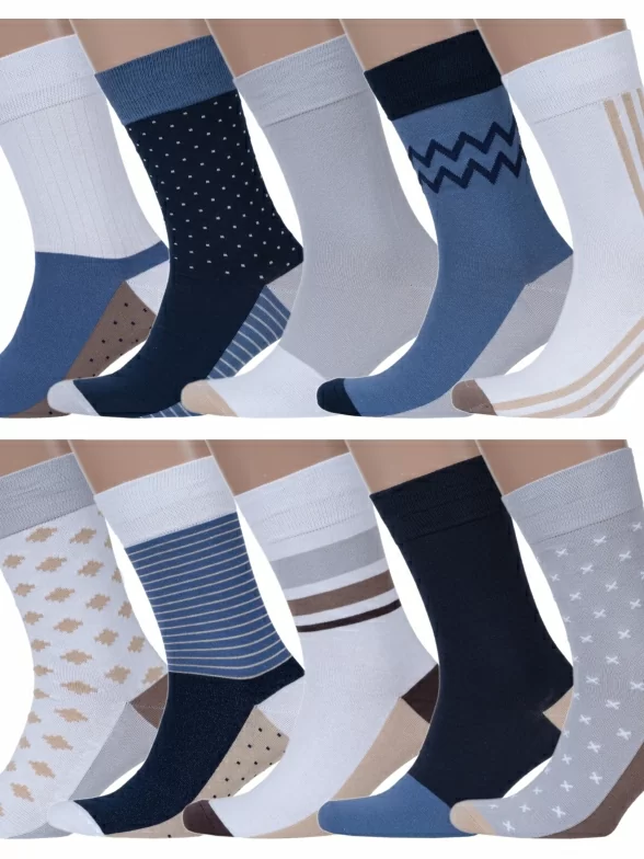 В этот набор MSCLUB входят 10 пар мужских носков в спокойных расцветках с классическими принтами, которые подойдут для любого повседневного образа.