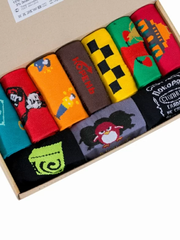 Комплект носков компактно упакован в стильную коробку! Для сохранности внешнего вида при транспортировке, упаковываются в плотный картон, который предотвратит возможную деформацию или потертости.