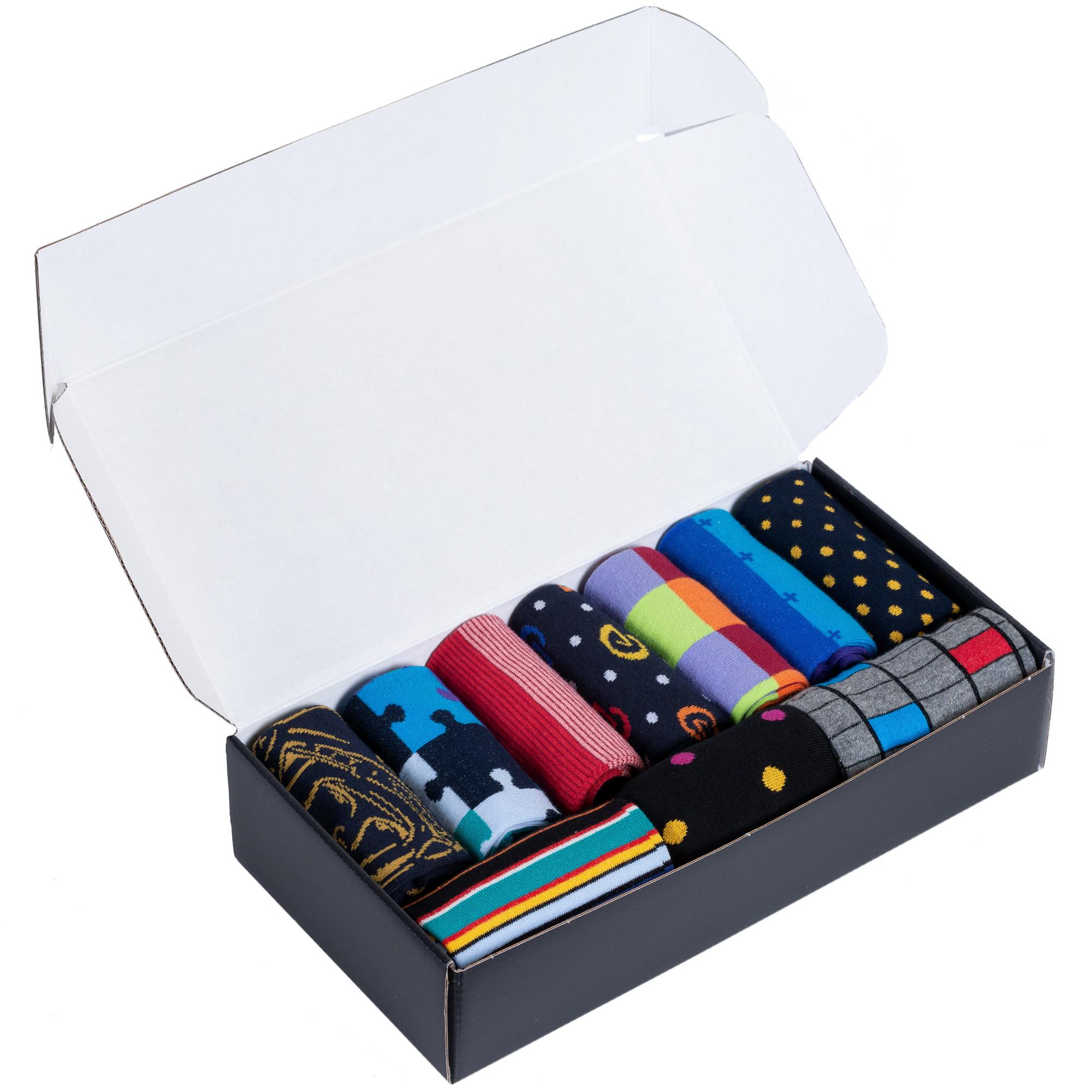 В наборе 10 пар цветных носков с разнообразным принтом - горох, полоска, клетка, абстракция и даже фантастические носки с изображением первого человека в космосе - легендарным Юрием Гагариным. Такой набор станет отличным подарком на любой праздник или выгодной покупкой для себя лично, ведь покупая носки упаковкойвы экономите приличную сумму денег. Носки состоят на 82% из хлопка - они качественные, износостойкие и очень эластичные. Не теряют свою форму и цвет после многочисленных стирок. Удобная резинка не пережимает ногу в течение всего дня.