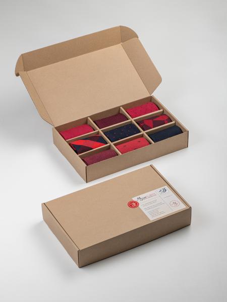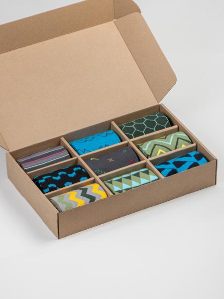 Носки компактно упакованы в стильную фирменную коробку. Для сохранности внешнего вида при транспортировке упаковываются в плотный картон, который предотвратит возможную деформацию или потертости.