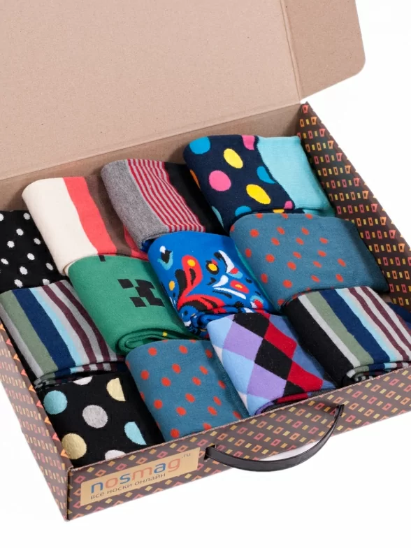 Это не кейс, а настоящая радость для любителя необычных носков! Двенадцать пар, и все разные, а каждый принт – особенный. У обладателя такого комплекта не будет проблем с оригинальными носками, зато будет трудно определить, какие из них любимые. Каждая пара – классической длины. Носки сделаны из качественного хлопкового трикотажа и обладают высокой износостойкостью, а также поддерживают комфортный микроклимат, обеспечивая комфорт на протяжении всего дня. Идеальный выбор для тех, кто стремится выглядеть броско!