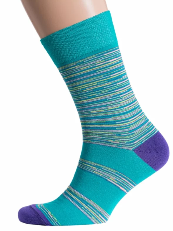 Носки вяжутся на российской фабрике МС Клаб на современных станках высокого класса (с плотностью вязки в 200 игл). Благодаря качественному оборудованию и оптимальному сочетанию гребенного хлопка и синтетических нитей эти носки износостойкие, гладкие и плотные. Двойной широкий борт не пережимает ногу, при этом надежно фиксирует носок на голени.