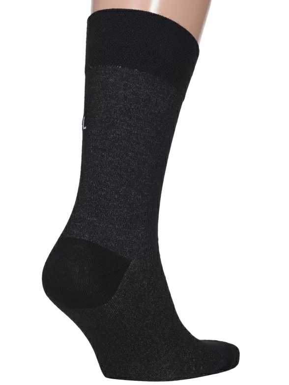 Носки вяжутся на российской фабрике МС Клаб на современных станках высокого класса (с плотностью вязки в 200 игл). Благодаря качественному оборудованию и оптимальному сочетанию гребенного хлопка и синтетических нитей эти носки износостойкие, гладкие и плотные. Двойной широкий борт не пережимает ногу, при этом надежно фиксирует носок на голени.
