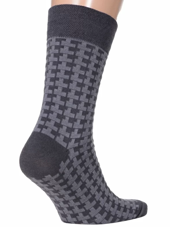 Носки вяжутся на российской фабрике МС Клаб на современных станках высокого класса (с плотностью вязки в 200 игл). Благодаря качественному оборудованию и оптимальному сочетанию гребенного хлопка и синтетических нитей эти носки износостойкие, гладкие и плотные. Двойной широкий борт не пережимает ногу, при этом надежно фиксирует носок на голени.