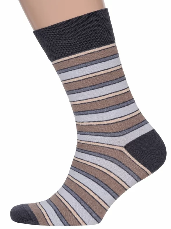 Носки вяжутся на российской фабрике МС Клаб на современных станках высокого класса (с плотностью вязки в 200 игл). Благодаря качественному оборудованию и оптимальному сочетанию гребенного хлопка и синтетических нитей эти носки износостойкие, гладкие и плотные. Двойной широкий борт не пережимает ногу, при этом надежно фиксирует носок на голени.