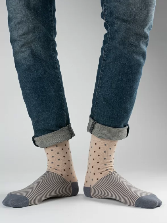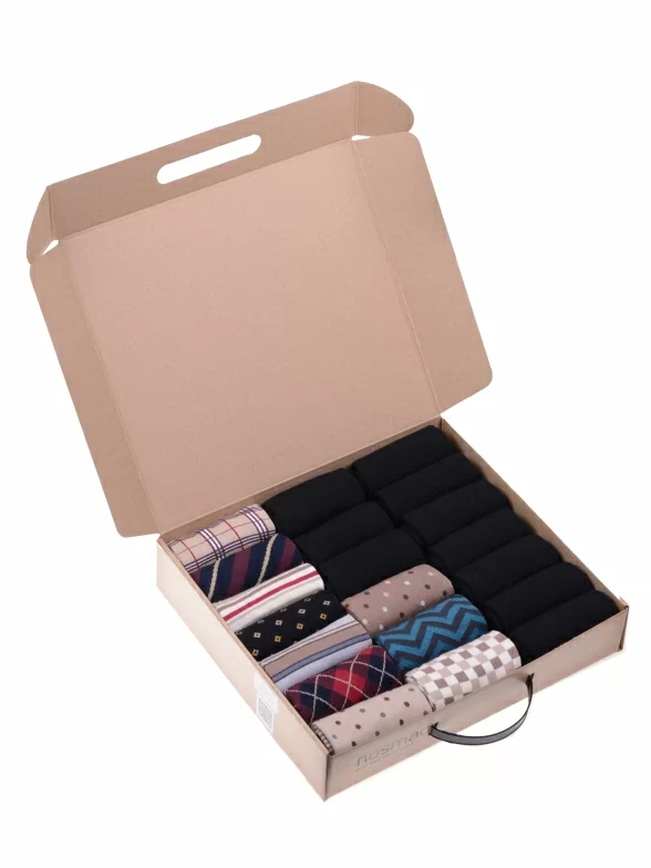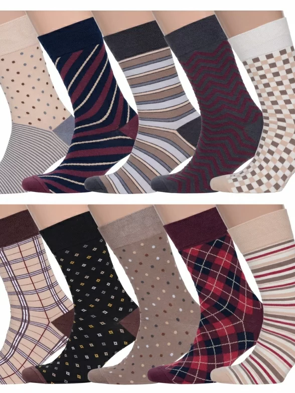 В этот набор мужских носков MSCLUB входят входят 10 пар в классическом черном цвете и 10 пар ярких носков с различными принтами, которые подойдут для любого повседневного образа.