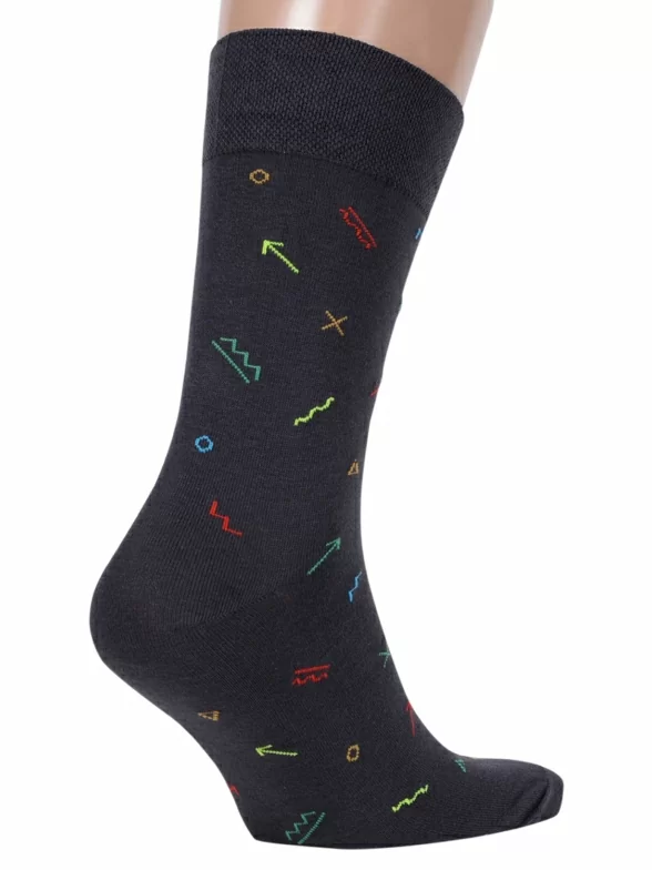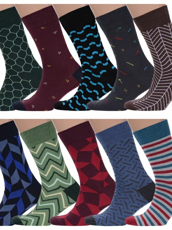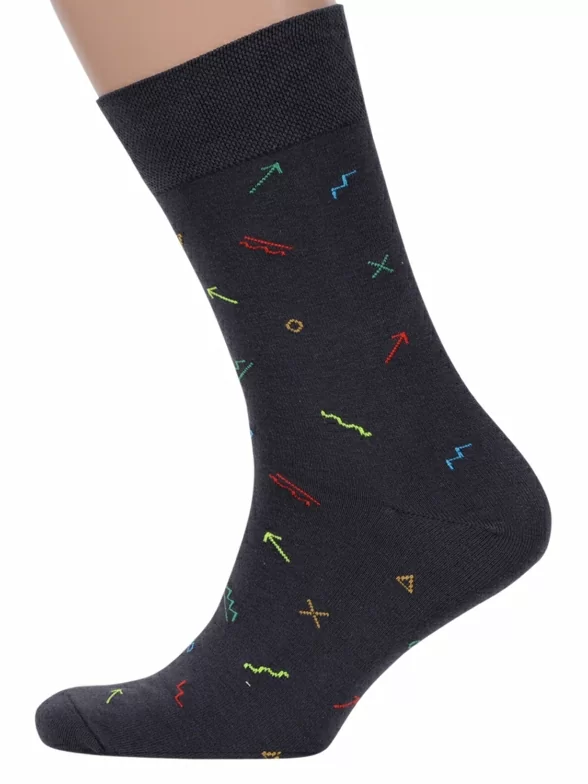 В этот набор мужских носков MSCLUB входят входят 10 пар в классическом черном цвете и 10 пар ярких носков с различными принтами, которые подойдут для любого повседневного образа.