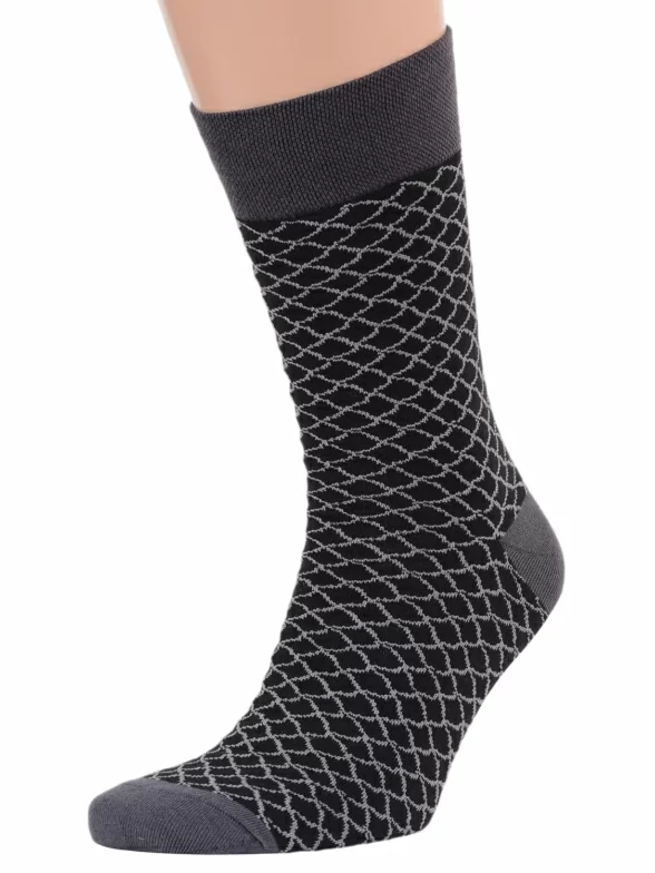 Носки вяжутся на российской фабрике МС Клаб на современных станках высокого класса (с плотностью вязки в 200 игл). Благодаря качественному оборудованию и оптимальному сочетанию гребенного хлопка и синтетических нитей эти носки износостойкие, гладкие и плотные. Двойной широкий борт не пережимает ногу, при этом надежно фиксирует носок на голени.
