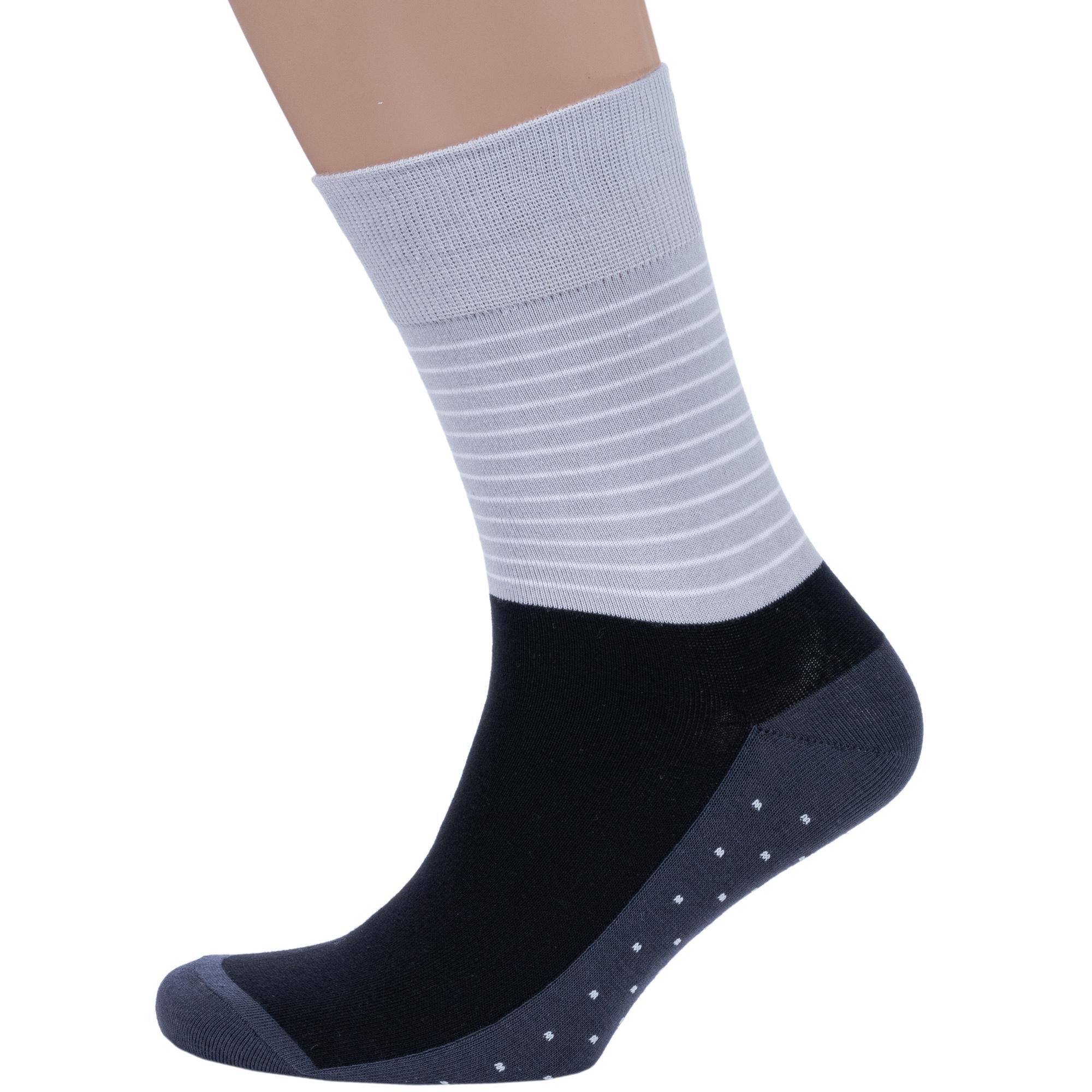 Носки вяжутся на российской фабрике МС Клаб на современных станках высокого класса (с плотностью вязки в 200 игл). Благодаря качественному оборудованию и оптимальному сочетанию гребенного хлопка и синтетических нитей эти носки износостойкие, гладкие и плотные. Двойной широкий борт не пережимает ногу, при этом надежно фиксирует носок на голени.