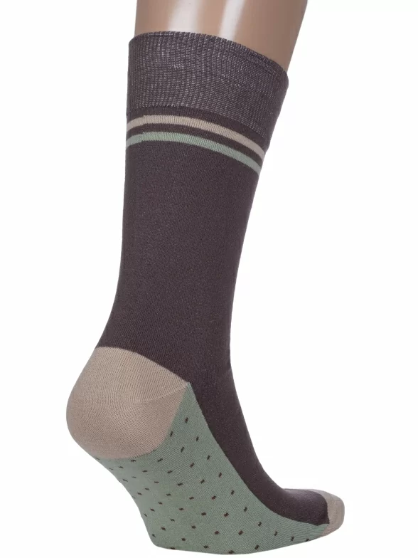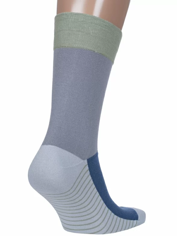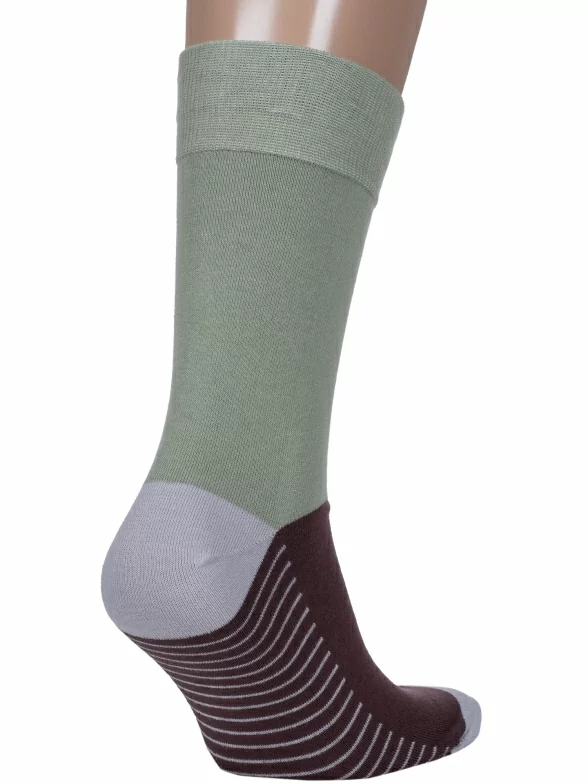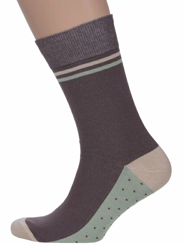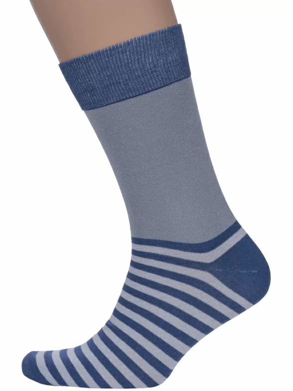 Носки вяжутся на российской фабрике МС Клаб на современных станках высокого класса (с плотностью вязки в 200 игл). Благодаря качественному оборудованию и оптимальному сочетанию гребенного хлопка и синтетических нитей эти носки износостойкие, гладкие и плотные. Двойной широкий борт не пережимает ногу, при этом надежно фиксирует носок на голени.