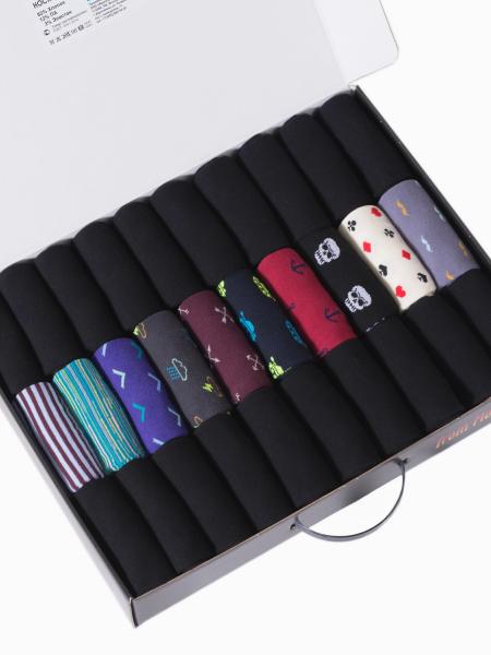 В этот набор мужских носков MSCLUB входят 10 пар в классическом черном цвете и 10 пар носков с принтами в полоску, горох и клетку, такие подойдут для рабочего дресс-кода и повседневного образа.