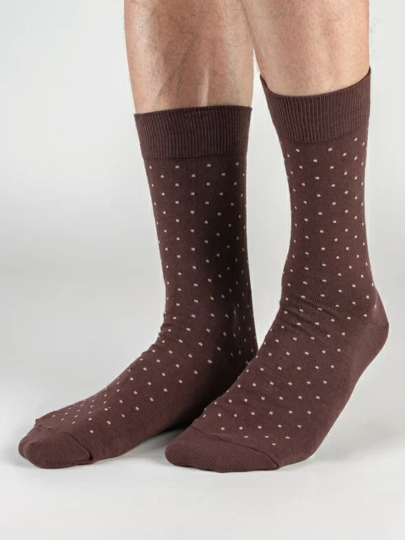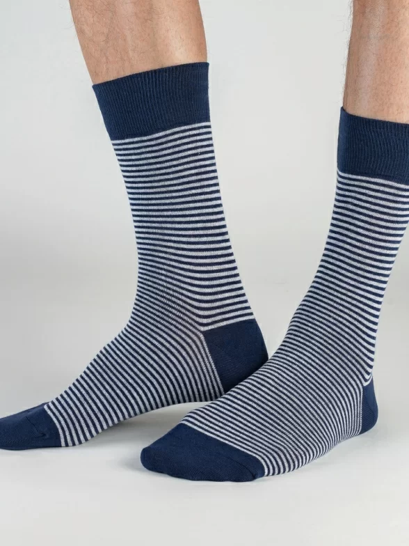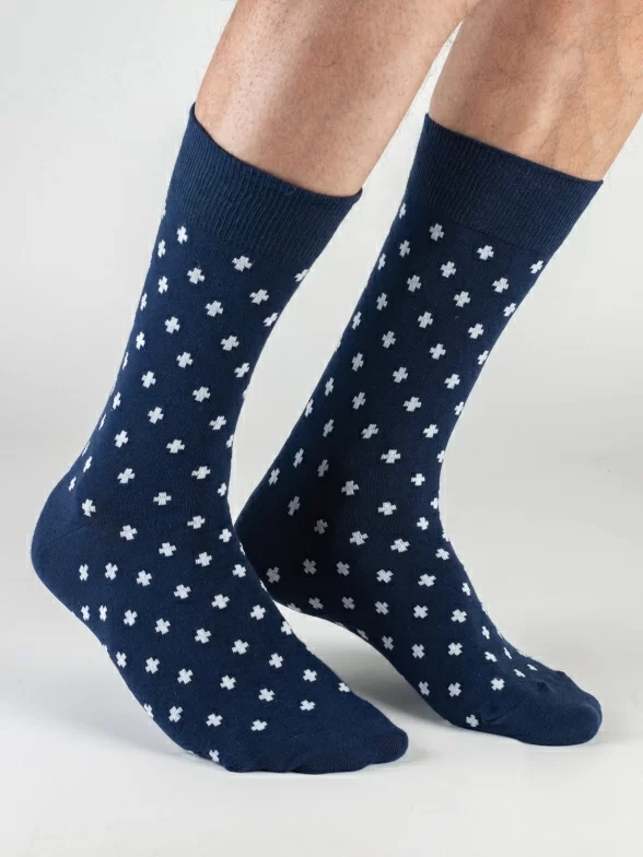 Модель средней длины с двойным бортом (манжетом резинки) и обычным швом на мыске связана из хлопка на российской фабрике. Входящие также в состав полиамид и эластан делают носки более плотными, эластичными и износостойкими.