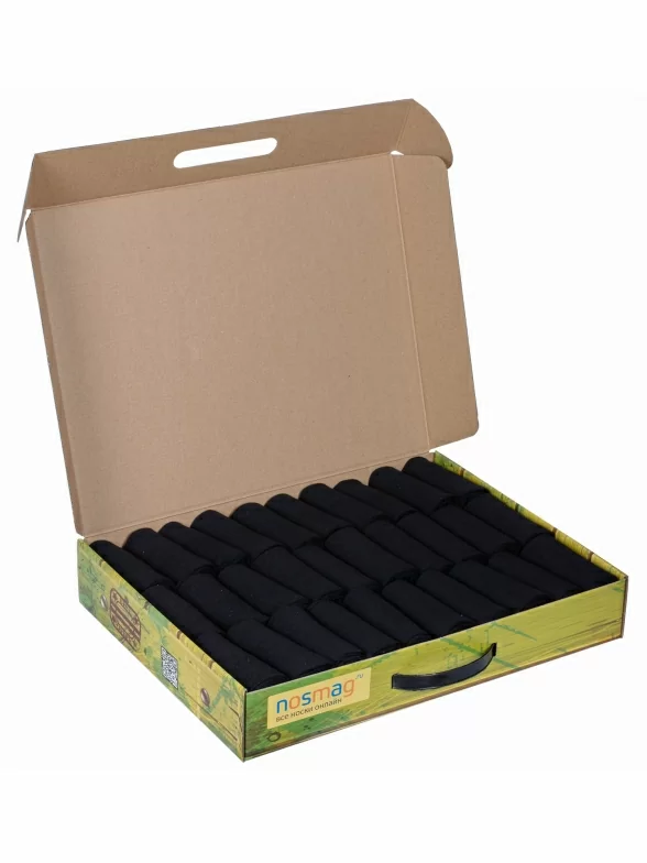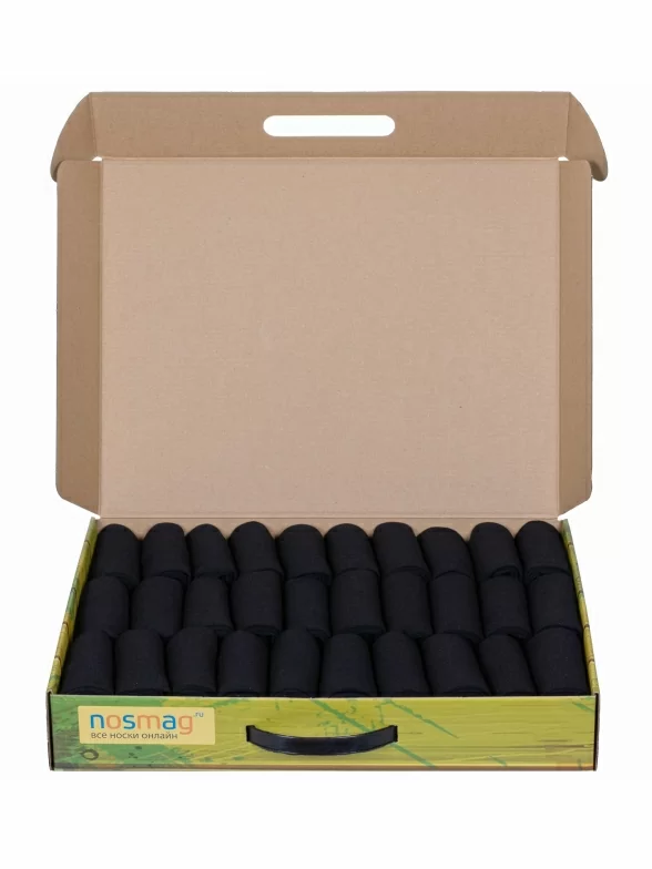 Носки свернуты в аккуратные рулончики внутри фирменного кейса. А чтобы он не потерся и не повредился при доставке, набор надежно упаковывается в транспортный плотный картон.