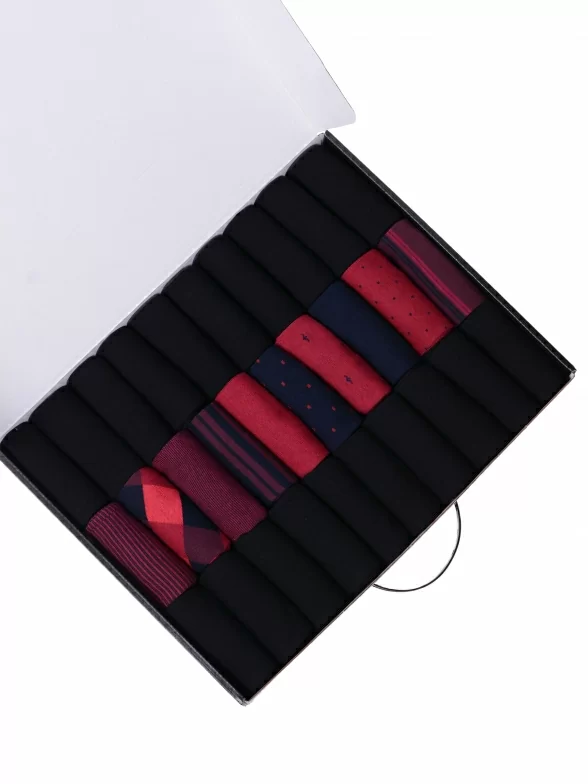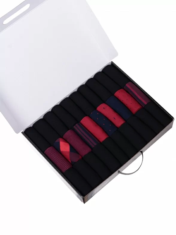 В этот набор мужских носков MSCLUB входят входят 20 пар в классическом черном цвете и 10 пар ярких носков с различными принтами, которые подойдут для любого повседневного образа.