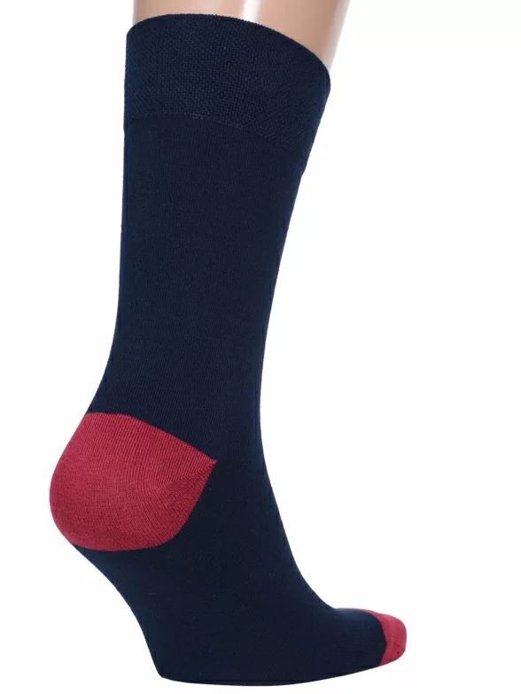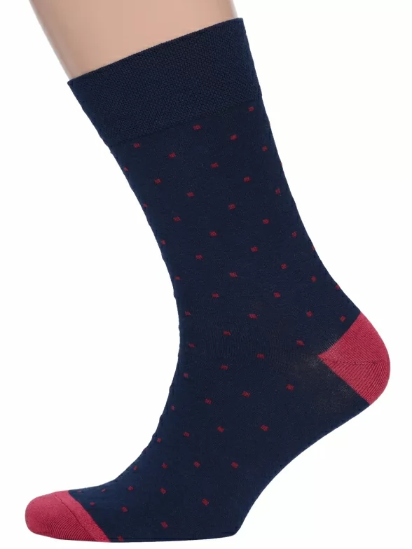 Носки вяжутся на российской фабрике МС Клаб на современных станках высокого класса (с плотностью вязки в 200 игл). Благодаря качественному оборудованию и оптимальному сочетанию гребенного хлопка и синтетических нитей эти носки износостойкие, гладкие и плотные. Двойной широкий борт не пережимает ногу, при этом надежно фиксирует носок на голени.